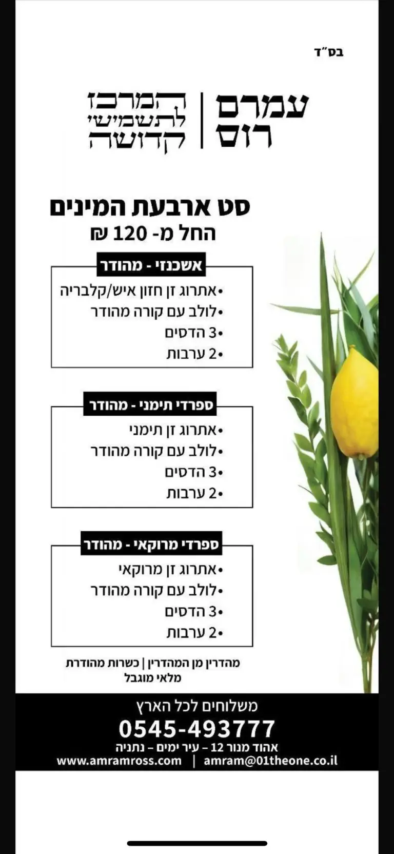 Products and sets of the four species are high quality and elegant for Sukkot that is needed in every Jewish home in Israel and around the world.