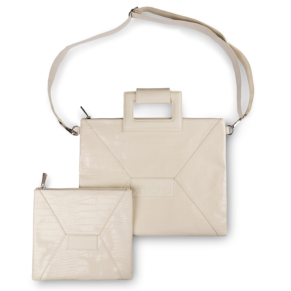 תיק מפואר לטלית ותפילין דמוי עור לבן – דגם יוקרתי – כולל ידית ורצועה
