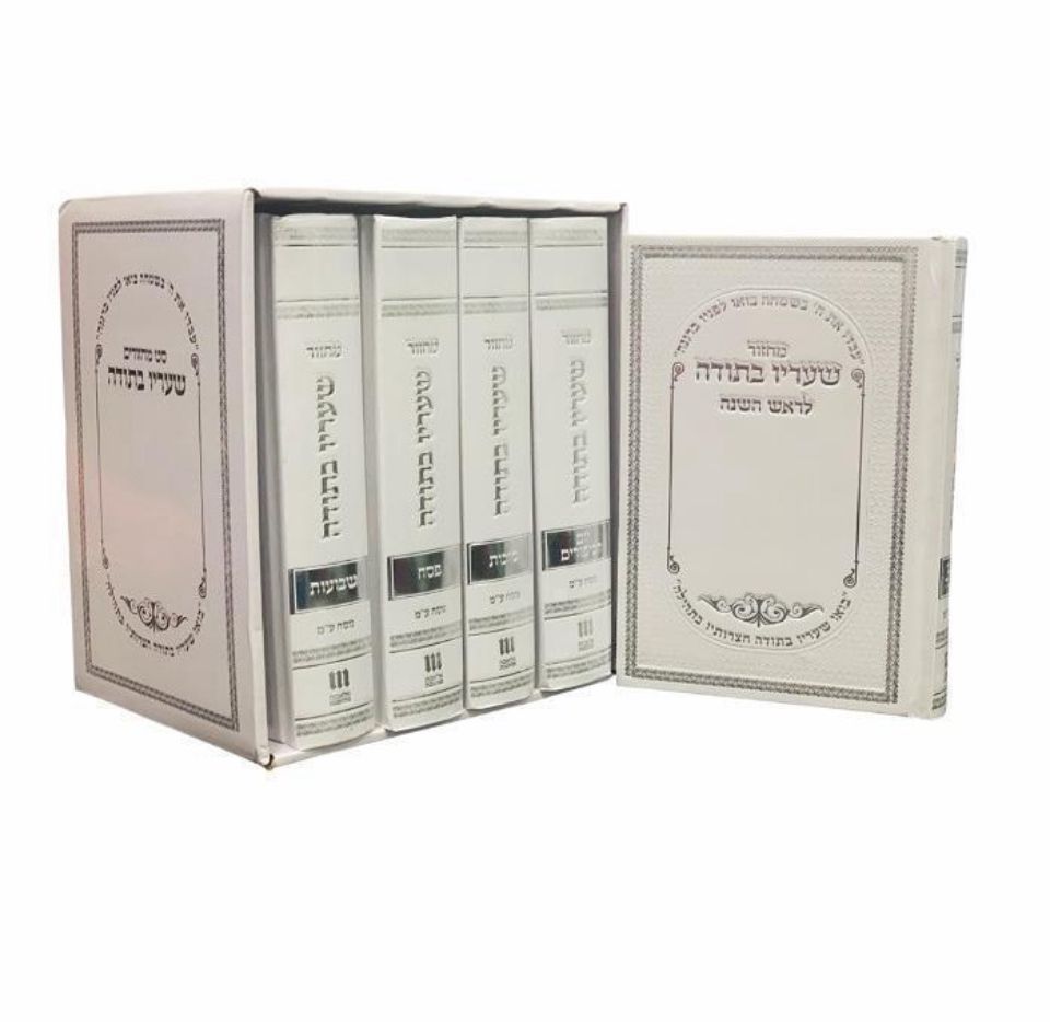 סט חגים "שעריו בתודה" – דמוי עור לבן עם כסף