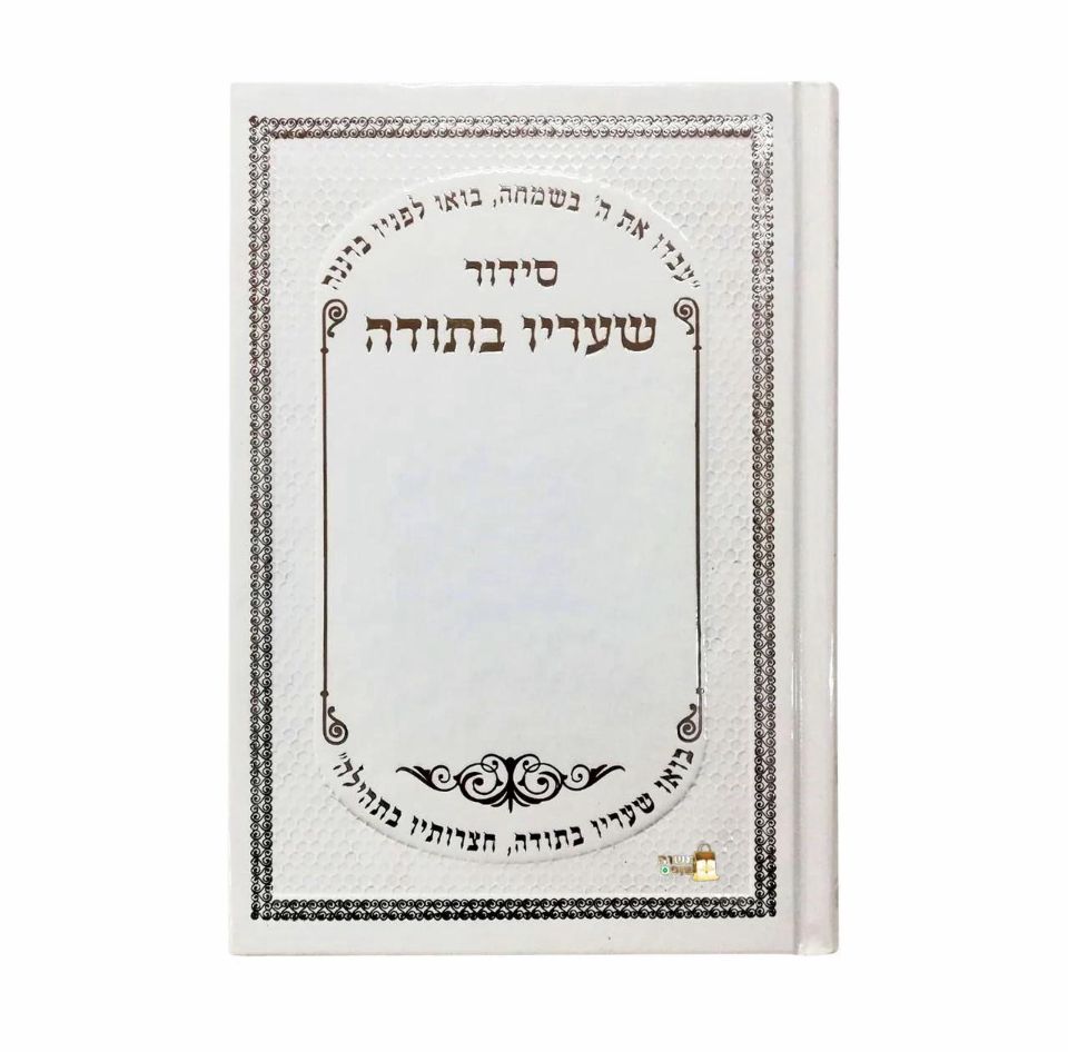 סידור "שעריו בתודה" – דמוי עור לבן עם כסף