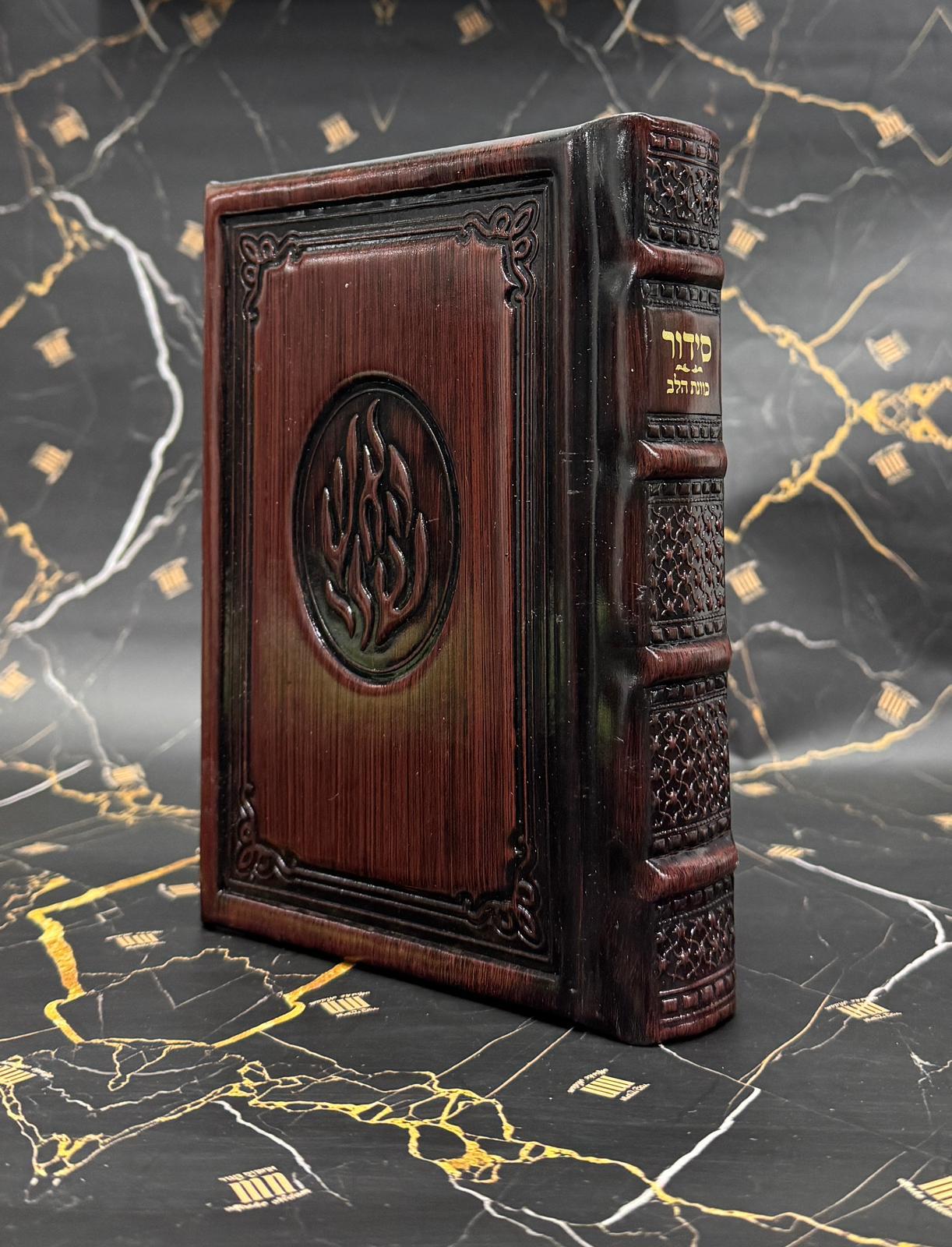 סידור כוונת הלב עור אמיתי עבודת יד דגם "האש שלי" – צבע חום