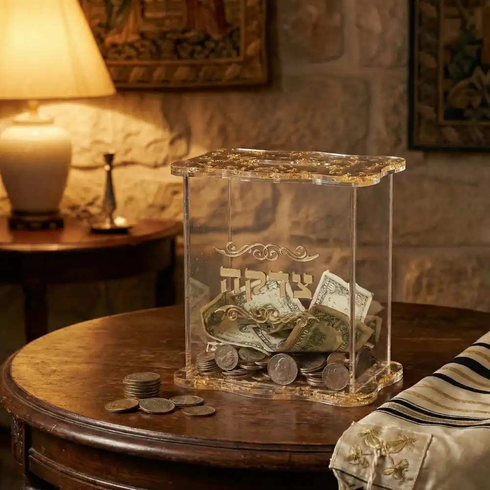 קופת צדקה אקריליק כסף – 13 ס"מ